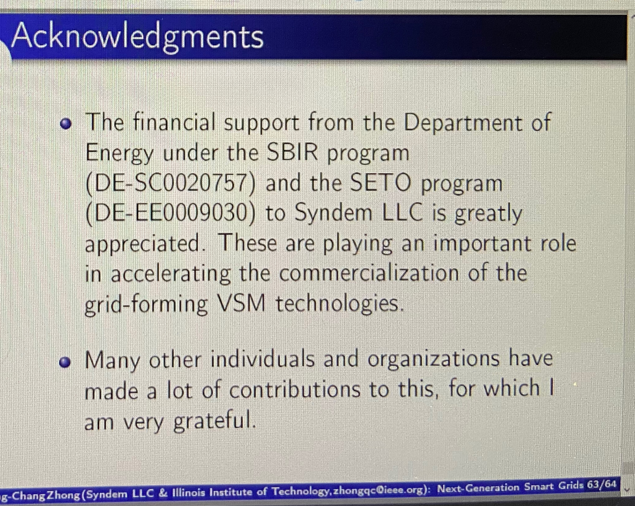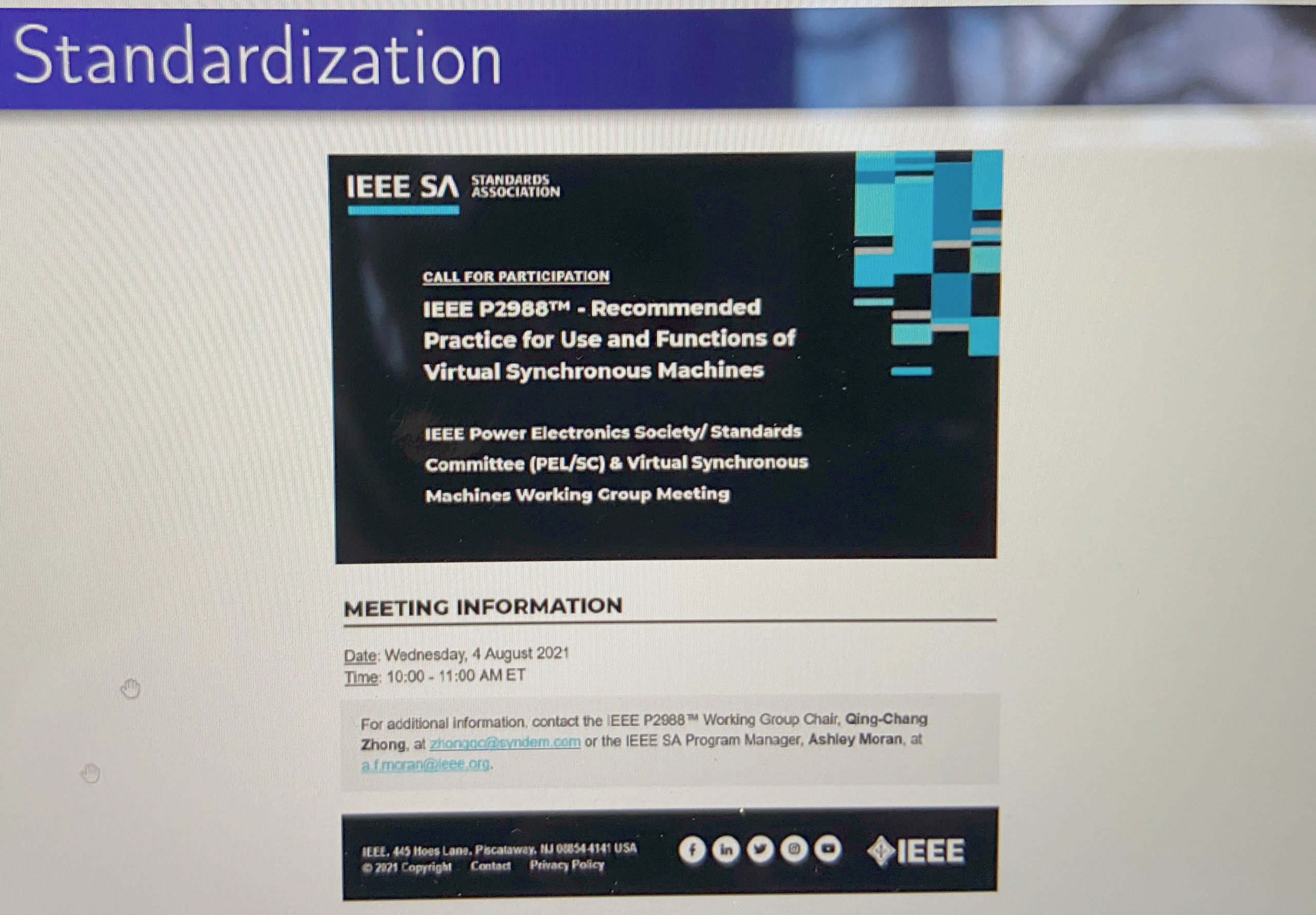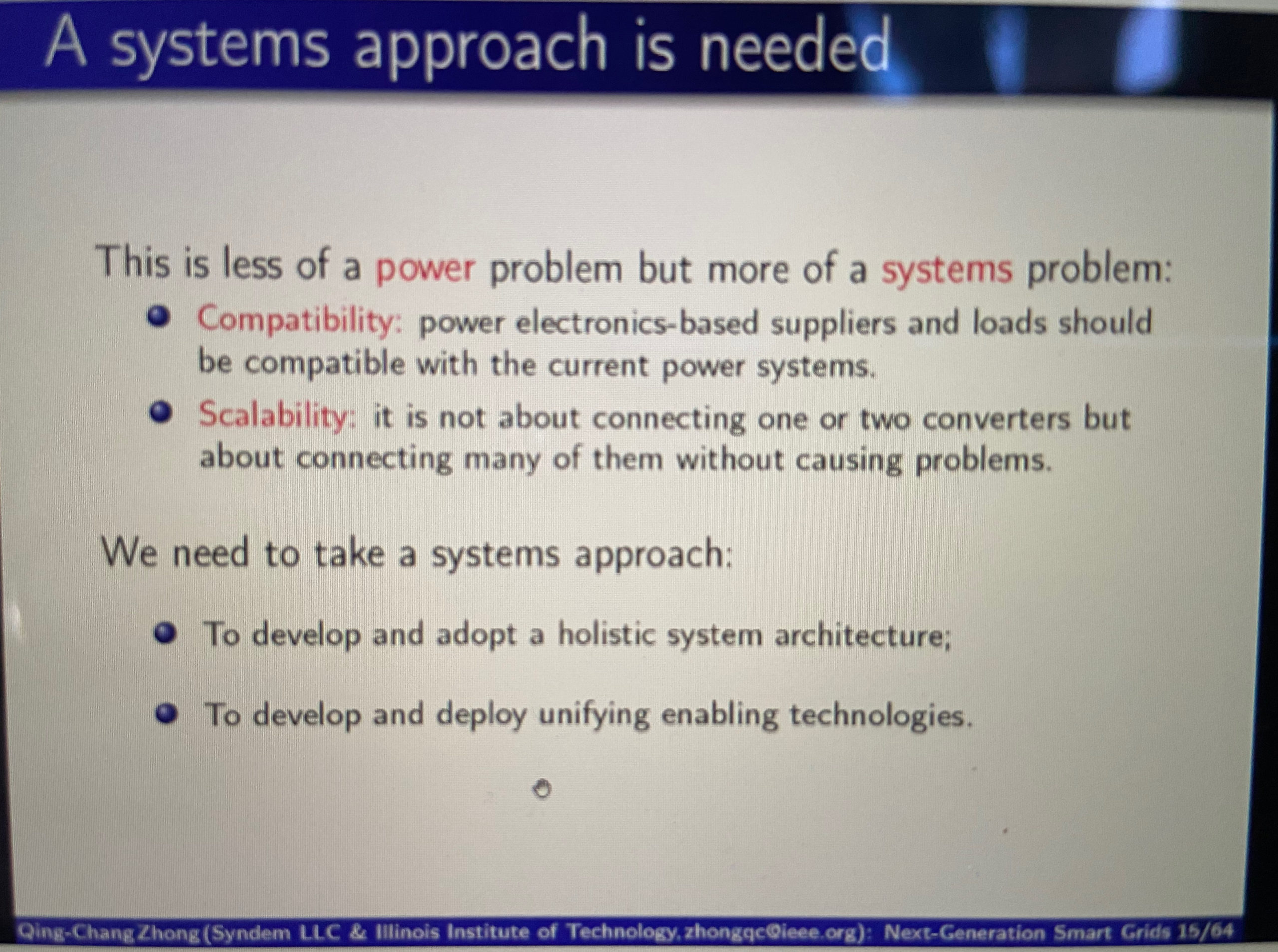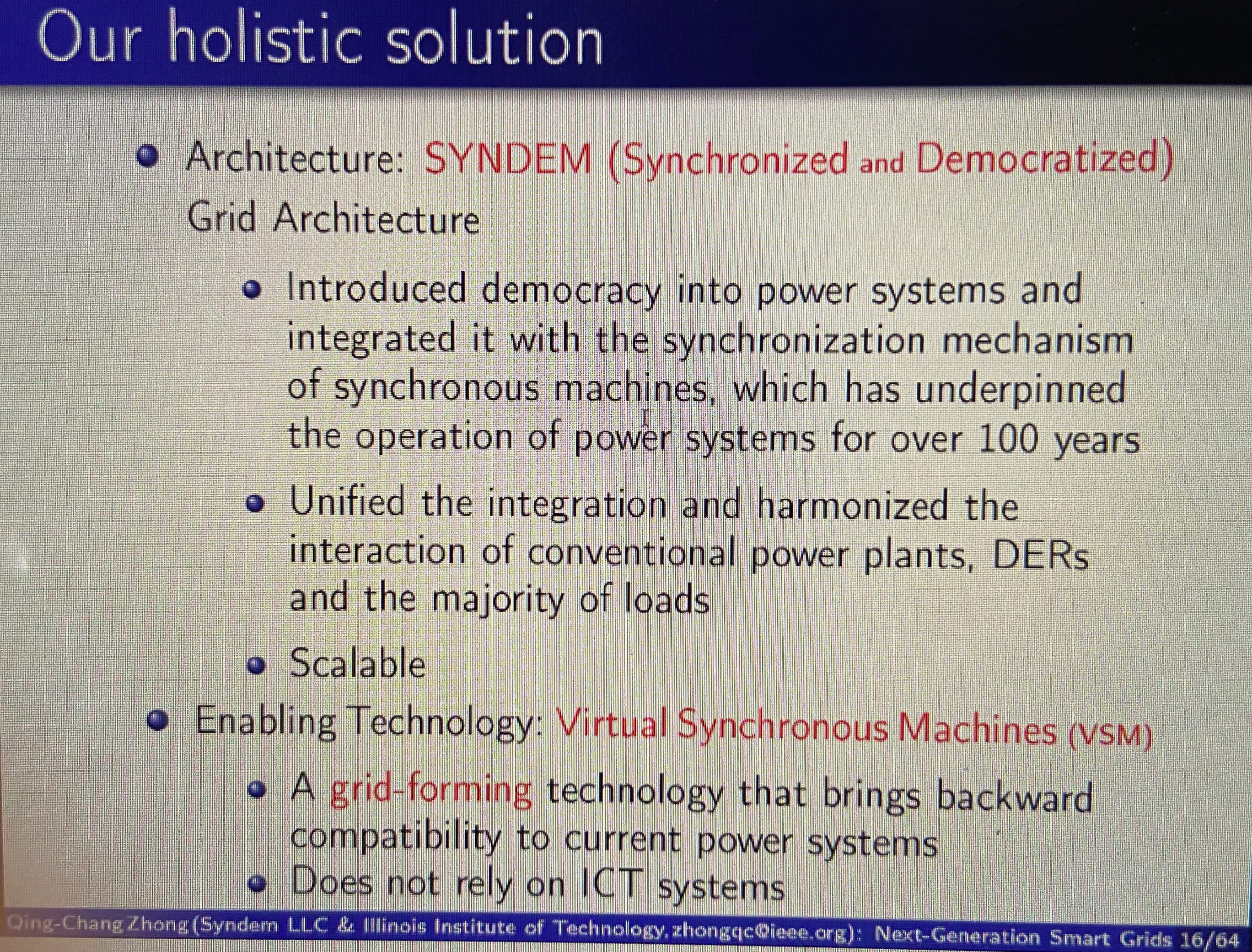 On June 22nd, IEEE (PI)2 Austin hosted a virtual and in-person Technical Meeting entitled “Power-Electronics-Enabled Autonomous Power Systems: Next-Generation Smart Grids” Dr. Qing-Chang Zhong of the Illinois Institute of Technology, Chicago, a Distinguished Lecturer of three IEEE Societies discussed his research and vision that future power systems will be power-electronics-enabled with millions of heterogeneous active players, rather than electric-machines-based with thousands of homogeneous generators. Dr. Zhong discussed a holistic grid architecture, which he referred to as the SYNDEM (synchronized and democratized) grid architecture, together with its technical routes, which will accelerate a paradigm shift and harmonize future power systems. He explained that millions of power-electronics-enabled active players, large or small, supplying or consuming, can be controlled to behave like virtual synchronous machines so that they can equally, autonomously, and actively take part in the regulation of system frequency and voltage. Moreover, he stated that the communication infrastructure can be released from the low-level control of power systems, opening up the prospect of achieving autonomous operation for future power systems without relying on communication networks. Dr. Zhong concluded that this holistic solution could considerably enhance the stability, scalability, operability, security, reliability and resiliency of the next-generation smart grid.